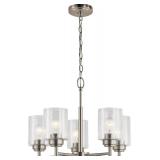 KICHLER Winslow 19.75 in. 5-Light Brushed Nickel Contemporary Shaded Cylinder Chandelier for Dining Room