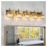 EDISLIVE Orillia 35.4 in. 5-Light Gold Bathroom Vanity Light with Crystal Shades