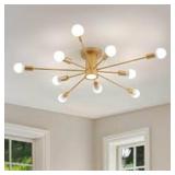 Cedernut 40 in. 10-Light Gold Dimmable Linear Semi- Flush Mount Sputnik Ceiling Light Vintage Mid-Centuries Chandelier