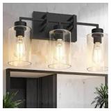 Emeritpro 17.13 in. 3-Light Matte Black Vanity Light with Clear Glass Cylinder Shades, E26 Base Wall Sconce for Bathroom Fixture