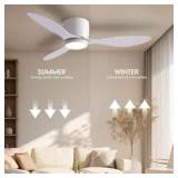 WDETR 42 in. Smart Indoor White Low Profile 3 Blades Ceiling Fans with Lights with Remote Included