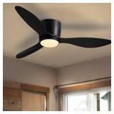 TOZING 52 in. LED Indoor Modern Black Dimmable Low Profile Vintage Flush Mount Ceiling Fan Light with Remote for Living Room