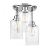 Globe Electric Annecy 3-Light Brushed Steel Semi-Flush Mount Ceiling Light with Clear Glass Shades
