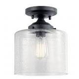 KICHLER Winslow 8.5 in. 1-Light Black Hallway Contemporary Semi-Flush Mount Ceiling Light with Clear Seeded Glass