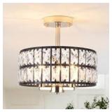 - Unique square lampshade with modern crystal adds elegance