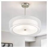 Fabric shade adds a modern farmhouse flair to your home