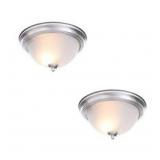 Commercial Electric 13 in. 2-Light Brushed Nickel Flush Mount with Frosted Glass Shade (2-Pack)