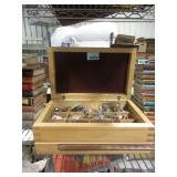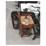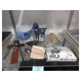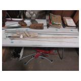SALE INCLUDES: Mid-Century furniture inc German Schrank display cabinet, 1960s German side maple dressing table, king size bed w/ Select Comfort mattress & Leslie Diamond dining set• quilt rack• handmade quilts• mission style cabinet• curio cabinets• 2gal salt glaze crock• antique wood butter churn• coins inc silver dollars, silver certificates, red seal notes, Roosevelt dime set, mint sets, proof sets, Barber quarters, large cents, Indianhead cents & more• cow bells• Poole Silver Co. tea service• antique railroad lock• 1933 World’s Fair collectibles• Taylor recording barometer• alligator leather purse• cast metal bookends• antique tin butter churn• chalkware horses• pocket knives• Eastman glass lantern slides• bone handled Civil War era flatware• MoorMan’s sign• Hamm’s ash tray• glass slides• 1800s Scandinavian wood spinning wheel spool holder• Army/Air Force sextant• vintage RCA Nipper doll• Antique lithographs• antique mirrored wall shelf• GE floor fan• Fishman Loud Box amp• Squire Starcaster electric guitar• Robert Peters signed fighter plane prints• Grolsch Lager beer sign• primitive tobacco basket• cast iron pans inc Griswold• Alesis Recital electric keyboard• Bavarian tea service• Noritake dinnerware set• Pyrex dishes• yellow depression• studio art pottery• Frankoma pottery• Hull Country Bar pitchers• Bennington bowls• antique figural cast metal clocks• Belleek• L’Abbe Francois decanter• Villeroy & Boch Mettlach tankard• milk bottles• vaseline glass• Fenton• mustache cups• Silver Tone deco tea service• Royal Daulton• flow blue dishes• pocket watches• comics• Cast iron enameled pans• Getzen Eterna 700 trumpet w/ accessories• original Paidi Kinderbett child’s daybed• wicker furniture• child’s wagon• antique dolls• vintage lures• Admiral AM radio• Heathkit tube checker• Travler electric radio• Zenith Oceanic radio• antique wood machinist chest• tool chest• waterfall chest of drawers• Brinks safe• tools• radio tubes• totes• blue canning jars• Delta 10” miter saw• power tools• hammock• vintage store scales• metal shop stools• vintage farm manuals• large ast of packing supplies & much, much more!!