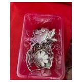 TIFFANY Silver Necklace & Charm, Heavy Silver Bracelet W/TIFFANY Charm, Numerous Other Pieces of Silver Jewelry, Gold Rings, An Abundance of Fine Costume Jewelry, $50.00 Jar of Wheat Pennies, Indian Head Cents, Buffalo Nickels, Proof Sets. Goto pellauctions.com For Photos.