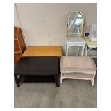 Home Décor. & Wall Art, Sofa & Loveseat, Fireside Wing-Back Chairs, Iron Headboard Bed W/Rails, Wood Rocking Chair, Modern “Old-Style” Jukebox(Radio-CD Player-Casette), Queen- Size Platform Bed, Floor Lamp, 5-Drawer Chest, Wicker Tables, Folding Chairs, Bar Stool, Side Tables, Coffee Tables, Jewelry Cabinet, Trestle Table, Headboard Bench, Davis Chest of Drawers, Roll-Top Desk, Game Table, 3-Drawer Chest, Shelves.
