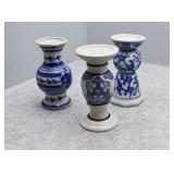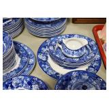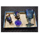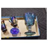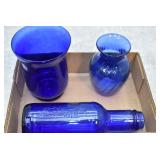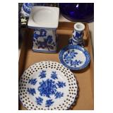 Antique Glassware: Vintage Glass Bottles, Glass Figures, Glass Oil Lamps, Carnival Glass, Blue and White Glass Woodsware Dinner Service, Large Amount of Blue and White Woodware Decorative Glassware, Art Glass, Decorative Glass Vases, Ceramic Glass Christmas Tree, Westmoreland Glass, Lenox Glass, Glass Lady Figurines, and Other