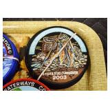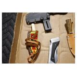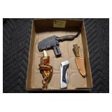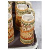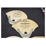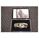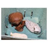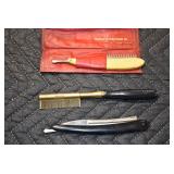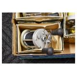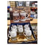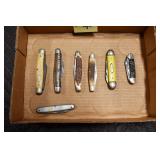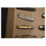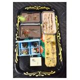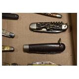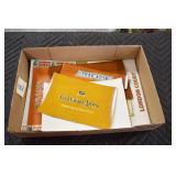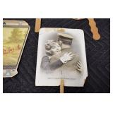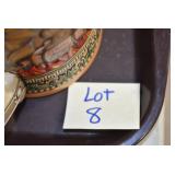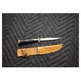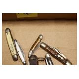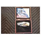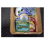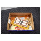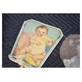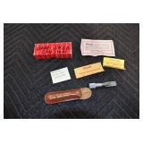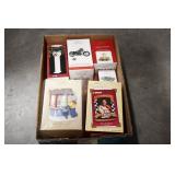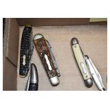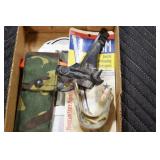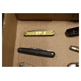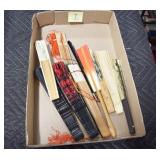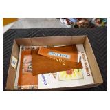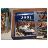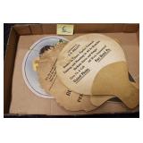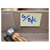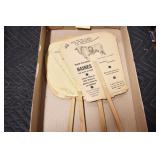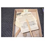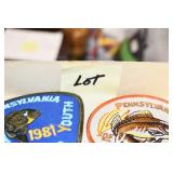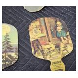 Antiques and Collectibles: Pottery Crocks and Jugs, Large Amount of Red and White Graniteware/Porcelainware, Cast Fry Pans, Large Amount of Hat Pins and Hat Pin Holders, Carved Wooden Animal Figures, Large Amount of Advertising Hand Fans, Beer Steins, Beer Advertising Items, Cast Horse and Carriages, Hallmark Keepsake Ornaments, Seasonal Decorations, Vintage Baseball Cards, Various Stamps, Game Commission Patches, Advertising Items, Old Photographs, Old Fishing Licenses, Marbles, Gold Tooth Filling, Wheat Pennies, Winchester Flashlights, Wooden Butter Churn, Copper and Brass Items, Tinware, Woodware, Sleigh Bells, Vintage Childs Books, Knife Sets, Large Amount of Folding, Pen, and Sheath Knives, Fishing Reels, Fishing Lures, Various Ammunition, Framed and Unframed Prints and Pictures, and Other