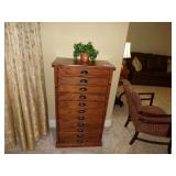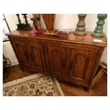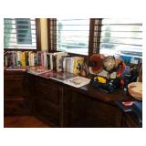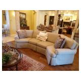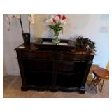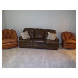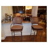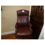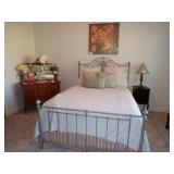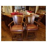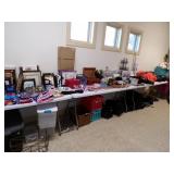 FURNITURE: Motion Craft Leather Reclining Sofa; Curve Sectional Sofa; (4) Leather Barrel Glider Chairs; (2) Motion Craft Leather/Nailhead Trim Recliners; (4) Sets Bar Stools; Large Adjustable Round Dining Table/6 Custom Chairs; (2) Entry Chests; (2) Buffet Cabinets; (2) Sofa Tables; Large Antique Display Cabinet; Antique Dresser; Several End Tables; Wooden Tea Cart; (2) Executive Leather Office Chairs; Executive Desk; Queen Iron Bed/Mattress & Bedding; Leather Storage Ottoman; Jewelry Chest; Large Wall Mirror; Nice Wood Bookcase.