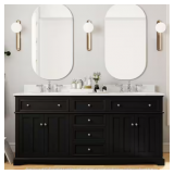 (45) Home Decorators Collection Fremont 72 in. Double Sink Black Bath Vanity with White Engineered Marble Top (Assembled)