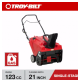 - Compact for easy storage and maneuverability, the Squall 123R will help you push winter aside and return to doing what you love most. Designed to handle up to 6 in. of snowfall, the Squall delivers reliable power with the 123cc 4-cycle Troy-Bilt engine, eliminating the need to mix oil and gas. Help reduce pushing effort with the Auger Assist drive system that grips the ground and enhances clearing efforts.