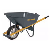 - Get more done with this hard-working True Temper wheelbarrow. The spacious 6 cu. ft. steel tray, rugged steel handles and flat-free tire make this unit ideal for just about any job.