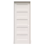30 in. x 80 in. 5-Panel Shaker Left-Hand Primed White Solid Core Wood Single Prehung Interior Door w/ Bore Hole
