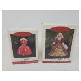 378 Set of 2: 1994 Hallmark Barbie Series Ornament, Debut 1959 Blonde, #1 in series, First in Series