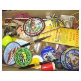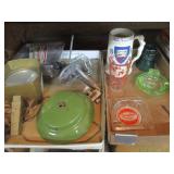 ANTIQUES & COLLECTIBLES Oak Chest of Drawers & Washstand; Coffee Table w/Glass Insert; Singer Treadle Sewing Machine, as is; Bubble Gum Dispenser; Planter’s Peanut Jar; Mercer Flow Blue Semi-Vitreous Dinnerware; Blue Willow Dinnerware; Pyrex Nest of 4 Early American Pattern Cinderella Bowls; Chimneys; Pr. Dresser Lamps; Marbles; Ladies Hats; Buttons; Mickey Mouse Travel Alarm Clock; Caterpillar & Michigan Watch Bobs; Men’s Costume Jewelry; Pocket Knives; Watches; Sterling 10K Class Pin; Political Pins; Wheat 7 steel Cents; Foreign Coins; Large Collection of Boy Scout Items (Handbooks, Patches, Pins, Slides, Pocket Knives, Hatchet, Mess Kits, Flatware, Backpacks, Uniforms, Clothing, Hats, etc.); Beer Collectibles (Shiner Bock Sign, Openers, Beer Cans, Glassware, etc.); Tin Lunchboxes (no thermos); Carbide Lights; Black Jack; US Bayonet; Vintage Beverage Sets & Glassware; Cartoon/Pepsi Glasses; Smurf Glasses; Peanut Butter Glasses; Ranger Joe Mugs; (4) Ned Smith Waterfowl Mugs; Embossed Quart Milk Bottles (John’s Dairy/Loyalton & Hillside Pasteurizing /Lake Wood, PA); Embossed McDonnell’s Dairy/Centralia Sour Cream Bottle; Embossed Hoffman’s Dairy/Gratz, Pint Milk Bottle; Tuscan Dairy Creamer; Smith Beverage/Williamstown Bottles; Assorted Pyro Milk Bottles (Miller Brothers, Hoffmans, etc.); Pepper/Ashland Embossed Bottles; ET Movie Lot; Small Snowman & Rabbit Blow Molds; Vintage Christmas Decorations; Local Advertisement Items (Calendars, Ashtrays, Fly Swatters, etc.); Auto License Plates; Postcards; Baseball Cards; Yesterday’s Child Dolls; Boyd’s Bear Resin; Wood Artic Ever-Down Sleeping Robe; Vintage Kitchen Tools; Wooden Rolling Pins; Cookie Cutters; Tins; Polaroid Model 133 Land Camera, IOB; 33 & 45 Records; Structo American Airline Sky Chief Truck; Lumar Contractors Truck; Tonka Toys Auto Carrier; Ny-Lint U-Haul; “Horse Shoe Brand” Wooden Wringer; Dovetailed “Dupont Explosives’ Box; Milk Carrier; Pulleys; Washboard; “Champion” Asparagus Buncher; Corn Sheller; Tin Washboilers; Griswold & Wagner Cast Iron Fry Pans; Gypsy Kettle; Cast Aluminum Oval Roasting Pans; Metal Lawn Rocker; Galvanized Gas Cans, Watering Cans & Trash Cans; 6-Gallon Crock, as is; Misc. Small Items too Numerous to Mention!