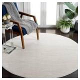 SAFAVIEH Whisper 8 ft. x 8 ft. Ivory Solid Striped Round Area Rug