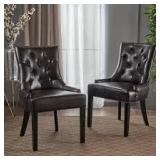 Noble House Hayden Brown Leather Tufted Dining Chairs (Set of 2)
