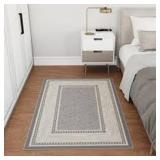 Ottomanson Ottohome Collection Non-Slip Rubberback Bordered Design 3 x 5 Indoor Area Rug, 3 ft. 3 in. x 4 ft. 7 in., Gray