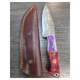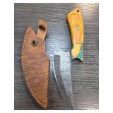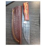 Damascus Steel Knife with Leather Sheath |