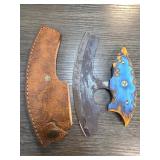Handmade Knife with Blue Handle and Leather Sheath |
