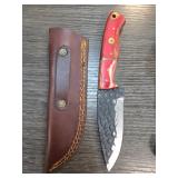 Handmade Knife With Textured Blade and Red Handle |