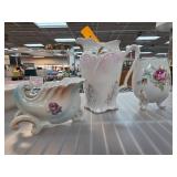 Porcelain Pitcher and Vases Set with Floral Design |