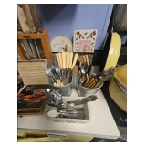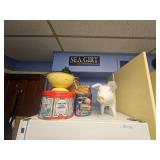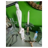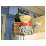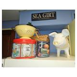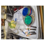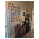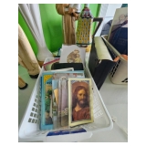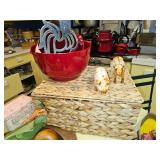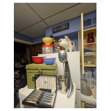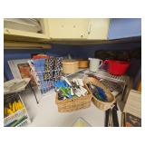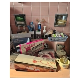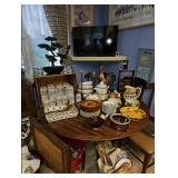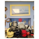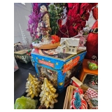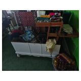 FAMILY ROOM...Upholstered 3 Seater Sofa, Pair Red Leather Club Chairs, Vtg Wood Coffee Table, Low 3 Tier Entertainment Center, Large Flat Screen TV, Signed/Numbered Artwork/Prints/Local Beach Art extensive list, Vtg Oval Mirror, Religious Items, Disney Endless Quality "Vtg Table Cloths/Linens/Napkins/Runners/Doilies/Chair Covers for Every Holiday, Christmas Decor from Yesteryear, Holiday Decor Galore/Garland/Stockings/Pointsetta/Ornaments/Vtg Angel Tree Topper/light up Porcelain Tree/Enormous Flat Screen TV, Ect KITCHEN...Modern Round Dining Room Table w/4 Chairs, Vtg Wood Two Tier console Table/Bench, Vtg Turn of the Century Wood Ice Box, Mid-Century Wrought iron high back bistro chairs, Small Kitchen Appliances/Tools, Large Flat Screen TV, Copper Pot Collection, Villroy & Boch Enamel Pots, Huge Selection of Pots/Pans/Baking/Bakeware, Coffee/Tea/Expresso Machines,/Cups/Saucers Cuisineart Food Processor/Electric Opener/Can Openers, Keurig, Osterizer/Braun/ Blenders, Glassware/Serveware/Flatware/Plasticware/Bakeware/Tupperware/Decorware, Cutlery/Utensils, Canisters/Pyrex/Anchor Hocking/Corningware, Cookbooks, Bread Boxes, , Kitchen Utensils/Flatwareand Much Much more.. HALLWAYS...Huge Selction of Dick LaBonte Artwork, Signed /Numbered Artwork...Pauline Mickle, Andrew Wyeth, Elise Barnett, 3 Lingerie Wood Dressers, Country Style Wood Cabinet, Beach Tapestry, Gladys Boalt Ornaments(rare), Brand New Designer Table Linens... OFFICE...Mid-Century Modern Bedroom Set.. Triple Dresser w/Mirroe/Highboy Dresser/2 Night Stands, Office Desk/File Cabinets/Desk Chairs/Shredders/HP Printers/Office Equipment/Supplies/Cables, Electronics/Stereo Equipment, Cds/Dvd's, World Globe, Frames/Stationary/Books/Games, Cameras (Polaroid, Vivitar/Kodak/Cannon...Figuratively Lamps, Vtg Perfume Bottle/Compact/Hat Pin/Hair Clips/Key Chains/Pill Box Collection, Vtg Glives/Hats(Leather/Wool/Winter)
