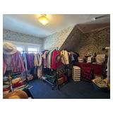 UPSTAIRS BEDROOMS ONE...Boho Bedroom Package.. 2 Dressers/Highboy/2 NightvStands/2 Lamps, Mid-Century Wood King Headboard, Red Pot Belly Stove, Stiehl Triple Dresser, Power Leather Lift Chair, Vtg White Hope Chest, Vtg Clothing Armoire, Safe, Standing Floor Fan, Vtg TV Stand, Trundle Day Bed, Black Lacquer Sideboard, Vtg Zenith Stereo Console, Wood Bookcases, Vtg Assorted Upholstered Chairs, Vtg Doll House w/Unbelievable Collection of Miniatures and Furniture, Religous, Unbelievable Collection of Bed Linens/Blankets/Comfortors/Duvets/Sheets/Pillows/Pillows Cases/Mattress.Covers/Shams,Towels/Bathroom Accessories/Supplies/Hair Dryers/Curlers, Hair/Facial/Bath/Pool/Beach/Medical Products and Supplies...One of the most Amazing Designer Collections of Woman's/Men's/Children's Clothing, Coats, Shoes,.Boots, Heels, Sandals, Handbags, Hats, Scarves, Belts, Wallets, and d so much more. You will feel like you just Entered Nordstrom Rack. Most Clothing has original Tags...Shop till you drop...All Top Designers Name Brands...Please look at my 2500 Photos. GARAGE/SHED...Holiday Entertainers Extravaganza...Christmas/Thanksgiving/Halloween/Valentines Day/St Patrick's Day/Easter/4th of July/Memorial Day! We have set up a Holiday Showroom with Thousands of Designer Merchandise All Top Designers...Byers Choice/Radko/Annalee/Boyd Bears/Lenox/Wilhel Schweizer Pewter/Waterford/Spode/Pier Lladro/Hallmark Keepsake Department 56 Galore/Mercury Ornaments Glaore/Christmas Trees every Size every shape/Vtg Wooden Wall Decor/Carolers, Ect. You name it its here! The SHED is liaded with all Outdoor Tools/Lawn Decor, Ect... This is one sale not to be missed! SOMETHING FOR EVERYONE AT THIS SALE...Please review 2500 pictures uploaded online...We will upload photos as more Merchandise is uncovered! Looking forward to seeing Everyone starting Thursday Morning... |
