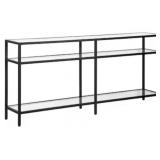 This modern industrial console table combines design with function. Create a warm welcome with the clean lines of this 64 in console table. Whether tucked behind the sofa or a display for a menagerie of trinkets, this console table is the perfect backdrop to create a magazine-ready display.