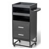 Features a tempered glass top and shelves.