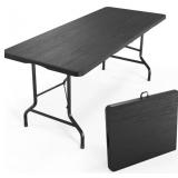 VINGLI 6 Foot Plastic Folding Table Portable Long Table for Indoor Outdoor Use Rectangular with Carrying Handle, Tree Patterned HDPE Tabletop, Black