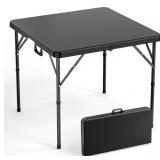 1.Easy Transportation: Fold in half features minimized storage space, a carrying handle included for easy transportation 2.Lightweight Design: Weight 19.5 lbs only, capacity up to 330 lbs. Lock design under the tabletop to prevent folding when open. 3.Multi-Functional: Frame is rust-resistant and powder coated, apply to multitude settings include indoor and outdoor; such as banquet hall, conference center, cafeteria, school, kitchen, playing room, restaurant; or garden, deck, patio, lawn and etc. 4.High Quality: 34" x 34" Table is constructed of High Density Polyethylene with impact resistant corners for superior strength and durability. 5.Easy to Use and Store: It won't take much room to store it as it could be folded as a suitcase. You could install it within 2 min.