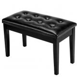 Bonnlo Wooden Double/Duet Piano Bench With Storage And Thick Cushion Faux Leather Padded Piano Stool Artist Duet Seat Black