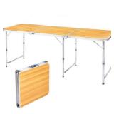 Winado - 6FT Portable Folding Camping Table with Carry Handle, Adjustable Height for Party Picnic Outdoor Patio Garden Indoor - Natural