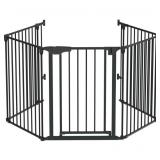 Bonnlo 120 Inches Wide Configurable Baby Gate, Fireplace Safety Fence/Guard, Adjustable 5-Panel Metal Play Yard for Toddler/Pet/Dog, Christmas Tree Fence, Includes 4 Pack of Wall Mounts, Black
