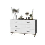 Zimtown Double Dresser with 6 Drawers, 52'' Wide Chest of Drawers for Bedroom, Storage Cabinet for Living Room, White
