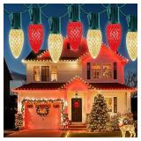 - Super Bright Vivid Lighting and Rectified: These commercial C9 string lights come with 100 led strawberry shatterproof c9 bulbs. Each c9 bulb with built-in high brightness SMD LED light bar and highly water sealing husk.the rectifier equipped inside the bulb base for preventing strobe lighting and Bring you better lighting effects, adding holiday cheer and warm atmosphere