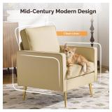 Home Accent Chair Modern Chenille Solid Wood Armchair with Cushions and Lumbar Pillow, Metal Frame Ideal for Lounge Space, Khaki
