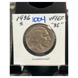 1936-S Buffalo Nickel VF/EF Condition |