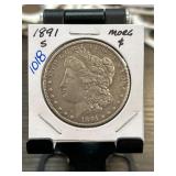 1891-S Morgan Silver Dollar in Display Case |