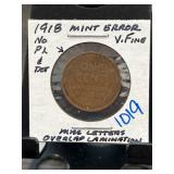 1918 Lincoln Wheat Penny Mint Error Coin |