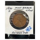 1930-D Lincoln Wheat Cent, Mint Error |