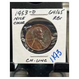 1953-D Lincoln Wheat Cent, CH. UNC, RB |