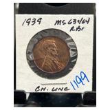 1939 Lincoln Wheat Cent MS63/64 RB |
