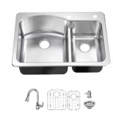 (179) Glacier Bay Bratten 33 in. Drop-In 60/40 Double Bowl 18 Gauge Stainless Steel Kitchen Sink with Pull-Down Faucet