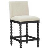 (181) Corlas 26 in. Medieval Modern Upholstered Counter Stools with Footrest, Rubber Wood Frame, Black + Beige, Set of 2